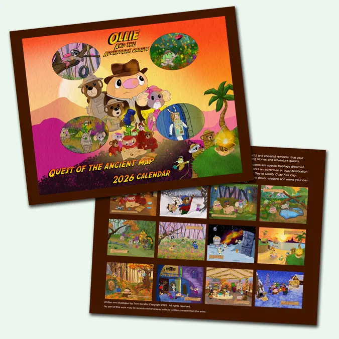 The adventure story calendar also pairs nicely with other artwork from Ollie’s world.